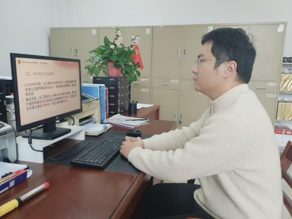 分会场,法学专业相关教师集中观看学习了全国人大常委会法制工作委员会研究室主任、法工委新闻发言人黄海华专家报告。黄海华主任以立法体系为主题,系统讲解了中华法系近现代螺旋式递进的立法进程,特别强调习近平法治思想在中国特色的社会主义法制体系建设中的重要作用。黄主任指出:各高校要进一步深入推进习近平法治思想进教材、进课堂、进头脑,充分发挥课堂主渠道作用,将习近平法治思想进行科学有机的学理转化,将其核心要义、精神实质、丰富内涵、实践要求贯穿于法学类各专业各课程,将社会主义法治建设的成就经验转化为优质教学资源,坚持立德树人、德法兼修,推动法学教育高质量发展,培养德才兼备高素质法治人才。