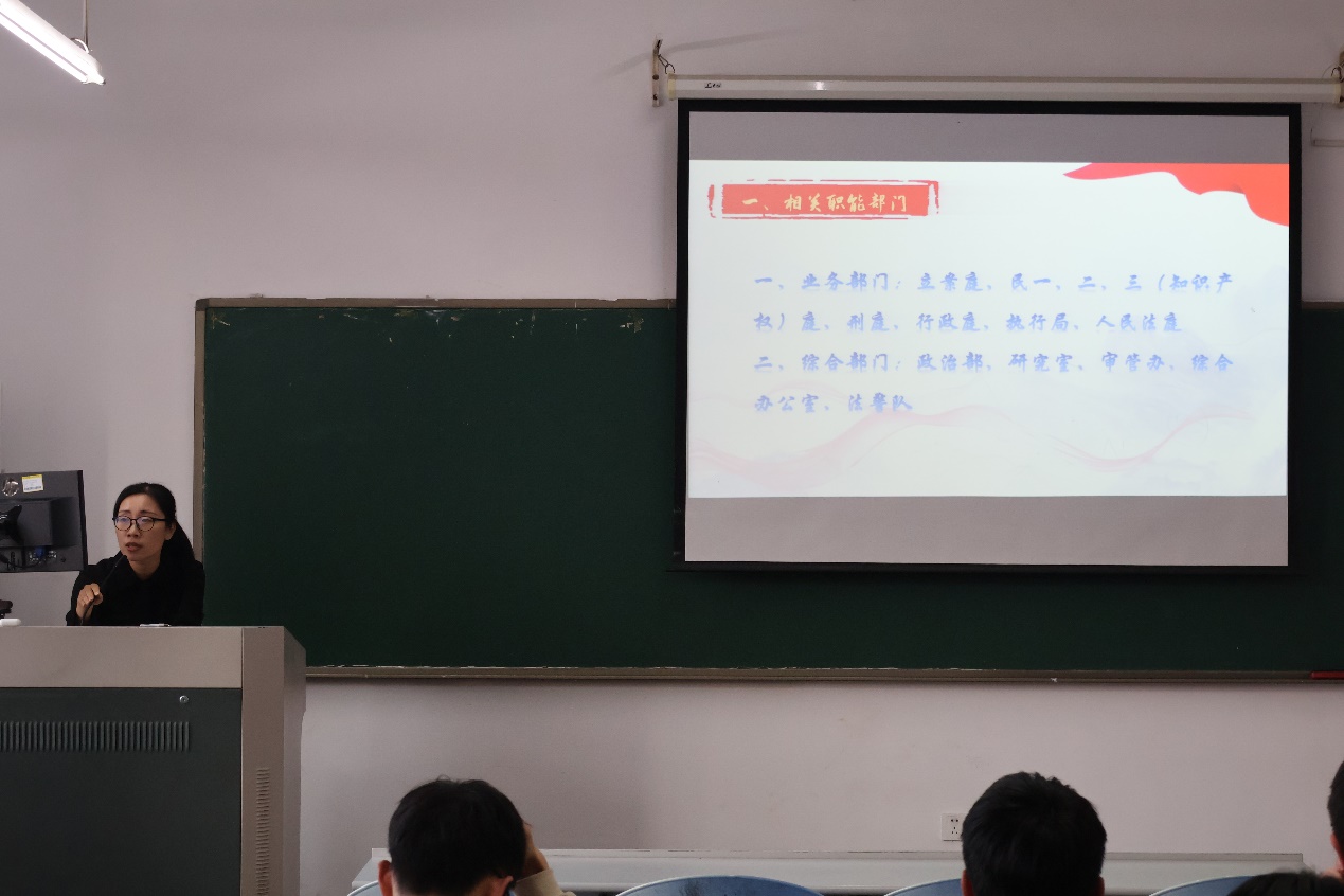随后,张凤妹法官对法院相关工作进行了深入阐释。其一,在职能部门架构方面,立案庭严谨审核立案案件,像司法大门守卫者般甄别,民事审判庭和刑事审判庭都在处理其相应领域案件中展现出对公平正义的追求,彰显出法律的威严。其二,书记员工作发生深刻变化,专业性增强,需掌握法律知识和记录技巧,其不仅是庭审记录者,更是司法程序保障者。其三,在法官助理工作方面,法官助理协助法官从受理审查到研究案例提供参考,如在知识产权侵权案的各个流程中准确表达思路,同时参与流程管理以保障审判高效。法官助理要注重政治、法律、社会效果统一,在少数民族案件中考虑民族政策维护团结稳定,在社会热点案件中确保判决获认可,弘扬核心价值观。
