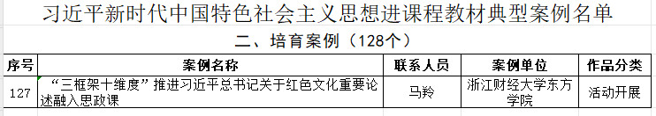 6月26日,根据《浙江省教育厅办公室关于公布习近平新时代中国特色社会主义思想进课程教材典型案例的通知》,公司报送的活动开展案例《“三框架十维度”推进习近平总书记关于红色文化重要论述融入思政课》入选习近平新时代中国特色社会主义思想进课程教材培育案例。