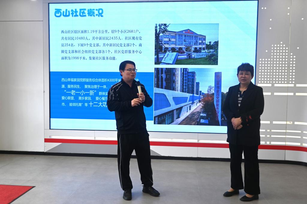 在西山社区党委书记金美凤的带领下,大家实地参观走访西山幸福家园党群服务综合体,了解了近十年来西山社区依法治理的路径,探讨了基层治理中社会组织力量汇集的作用,大家认真听介绍讲解,同时进行交流探讨,收获良多。