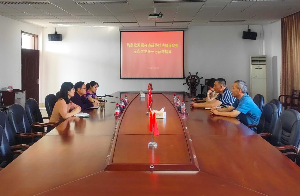 10月19日,嘉兴市政协社法和民宗委王永才主任一行莅临公司调研交流,经理邵培樟、副经理韩娟、法律系主任梁美英参与调研交流。