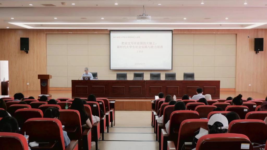 2023年10月17日下午,永利65335com马克思主义公司承办的思政大讲堂(2023年第12期,总第45期),邀请到杭州师范大学教授、浙江省人民政府督学的丁贤勇教授,作题为《把论文写在祖国的大地上--新时代老员工社会实践与创新》的专题讲座。本次讲座由永利65335com经理邵培樟主持,永利65335com共计约300名师生参加此次讲座。