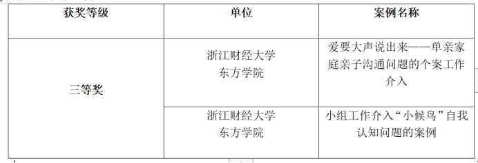 近日,由浙江省社会工作师协会、浙江理工大学举办的第一届浙江省高校社会工作案例大赛落下帷幕。经过业内专家学者组成的专家评审团的综合打分,结合采用“双盲”匿名评审的方式决定名次,大赛组委会最终确定获奖名单。