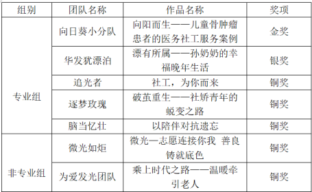 自发布大赛通知伊始,社工系精心筹备,广泛宣传,非社工专业的同学们也积极询问相关事项并踊跃参与。本次大赛以视频拍摄的形式线上评选,分为专业组与志愿服务组两个赛道,公司多名员工参赛。在社工系老师及专家评审的仔细筛选评比后,最终决出七支队伍参与决赛。通过与各高校队伍的激烈角逐,公司五支专业队伍和两支志愿队伍脱颖而出,分别斩获金、银、铜三项奖项。