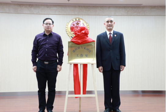 揭牌仪式开始,罗敏主任向全体检察官隆重介绍了邵培樟教授所取得的与人民检察工作相关的学术成就,并对设立“邵培樟专家团队工作室”的意义进行了说明。随后,曹国华检察长与邵培樟教授共同为“邵培樟专家团队工作室”揭牌。