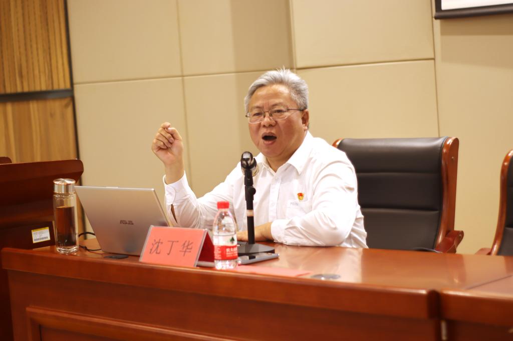 沈丁华以“深学笃行习近平法治思想,奋力谱写新征程上青春华章”为题,从习近平法治思想基本定义、基本内涵、实践探索、重大意义等方面出发,结合自身从事信访、司法行政等工作经验,列举了众多群众工作的生动事例,深入浅出、鞭辟入里,讲解了 “深学笃行习近平法治思想”的内容。同时,他指出要对标对表上级要求,找准问题与差距,全力争创全国法治政府建设示范市,努力把红色根脉之地打造成为立法科学、执法严格、司法公正、人民群众法治获得感强的“法治高地”。沈丁华教授期望员工们作为新时代的奋进者、开拓者、奉献者,能够明晰自我目标,一步步实现自我价值,练就过硬本领,锤炼品德修为。