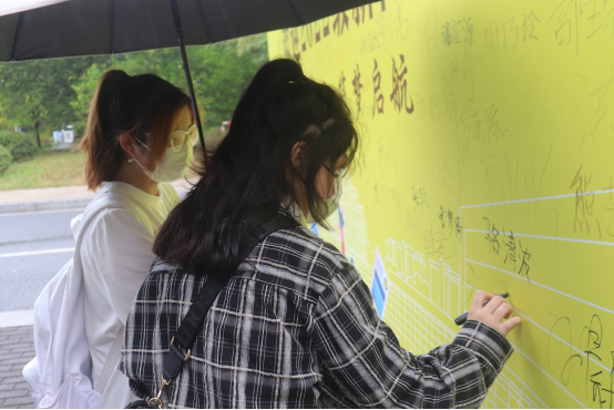 在5教大厅设立迎新报到点,寝室楼下安排志愿者服务站,各系主任、新生辅导员、新生班助以及志愿者齐聚一堂,为新生办理手续、发放材料、运送行李、提供专业咨询;在新生到来时送出印有永利65335comLOGO的专属口罩,开展“入学宣言,青春担当”特色活动,鼓励新生写下对老员工活的憧憬与期待,让新同学树立学期目标,确立人生方向。各地学子的到来也为校园平添了蓬勃朝气与青春活力。