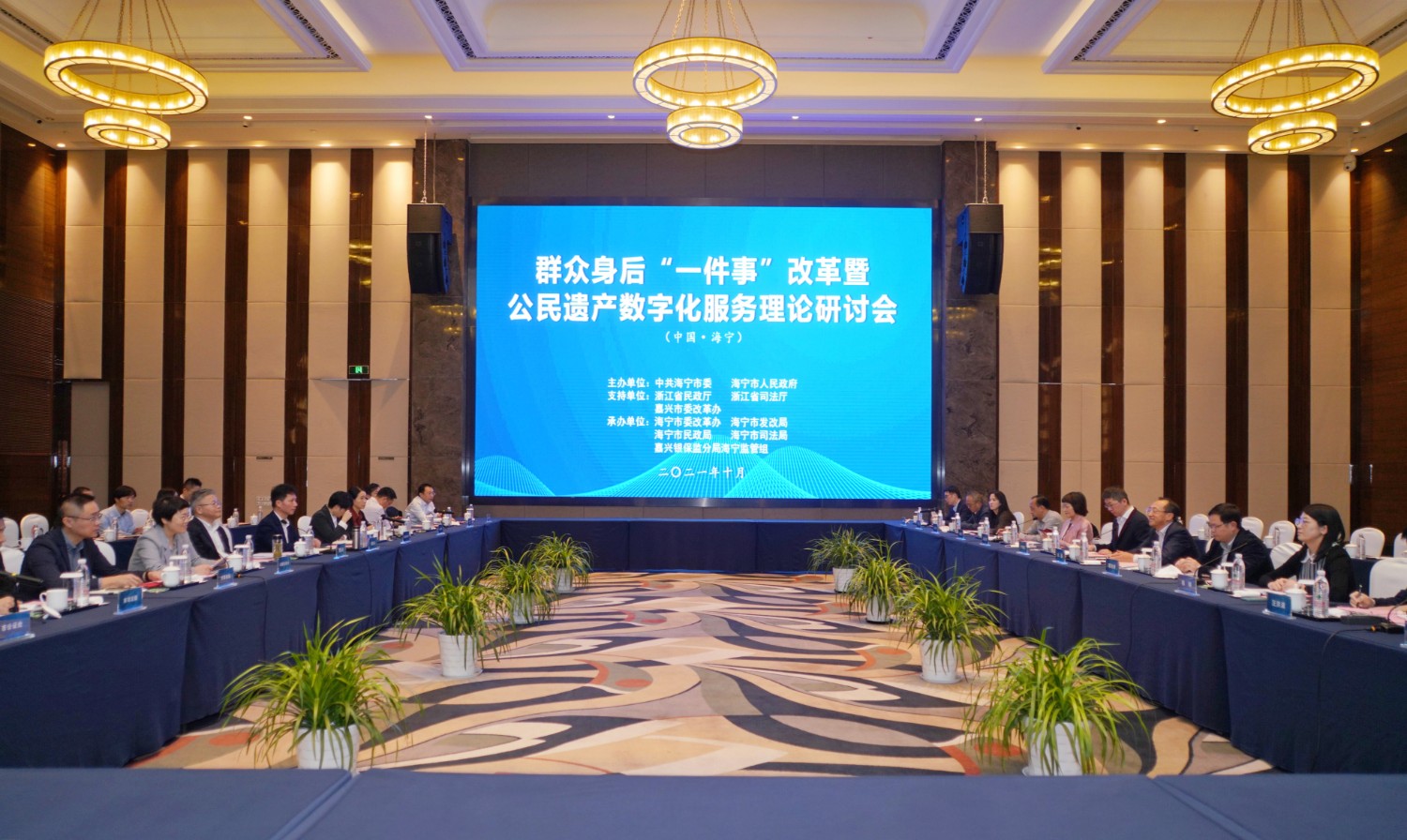 此次研讨会是我省数字化改革在公民遗产继承领域创新实践的理论探讨,也是海宁市创新公民遗产数字化服务模式的经验总结和下一步继续有效推进的有益诊断。海宁市作为全国殡葬综合改革试点县市,以群众“身后一件事”、“最多跑一次”改革为基础,借助数字化改革契机,集成开发上线身后“一件事”联办应用,在全省率先整合纳入涉财事项,不断推进群众“身后事项”办理的全流程闭环服务,为全省该项改革提供了“海宁样本”。