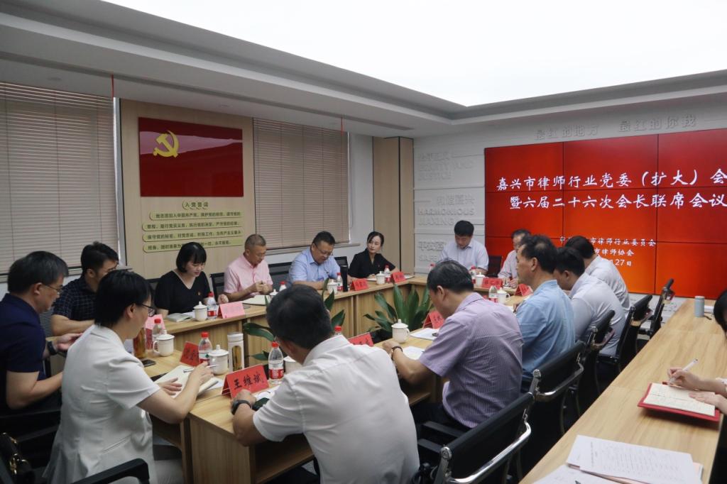 嘉兴市律师行业党委(扩大)会议暨六届二十六次会长联席会议召开。嘉兴市司法局副局长蔡加龙围绕“律师行业为什么要加强党建”上专题党课。