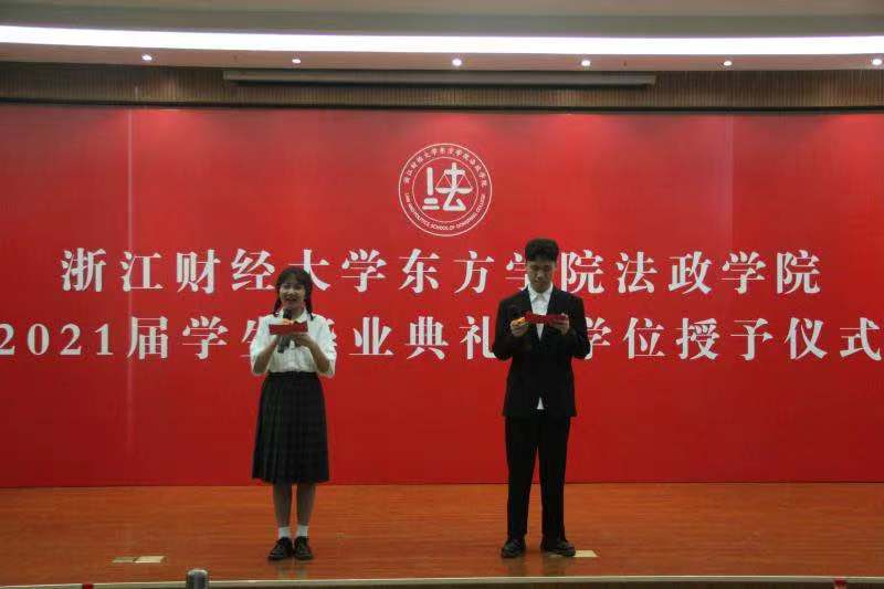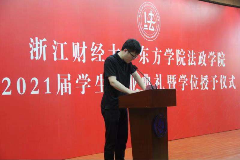6月22日下午2点,永利65335com2021届员工毕业典礼暨学位授予仪式在公司学术中心二号报告厅隆重召开。四年风雨兼程,时间沉淀的是知识的温度,母校带来的是人生的记忆,青涩懵懂而来,成熟收获满满而去,是离岸亦是归帆,东方公司的学子们蓬勃成长,永利65335com见证了2021届毕业生的青葱岁月。出席本次大会的有永利65335com副经理蒋钰明、浙江省民政事业发展促进会执行副会长王先益、海宁市人民法院副经理裘靖飞、永利65335com经理邵培樟、党总支书记叶颖蕊、副经理韩娟,以及公司教师代表和17级毕业班的同学们。本次大会由王安艺、孙梓钧同学主持。
