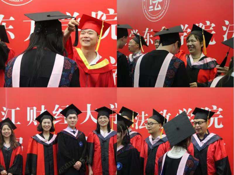 颁布后紧接着举行了永利65335com的传统仪式——拨穗仪式。拨穗,代表着麦穗的成熟,寓意着希望与祝福。毕业生们逐一上台,由领导以及老师们把员工学位帽上的帽穗,从右边拨到左边,并与之合影留念。