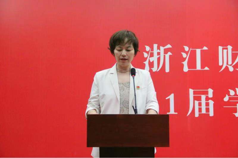 接着员工代表17法学2班骆佳盼同学上台发表演讲,在她饱含深情的话语中,深深表达了对公司的不舍之情,校园中可亲的老师们,可爱的同学们都使她难以忘怀。在今日的惜别时刻,骆佳盼同学表态不会辜负母校的培养,时刻牢记母校的教诲,同学们在六月的花海中离开母校,奔向各自的前程,她也祝愿每位同学都能有自己光明的未来。