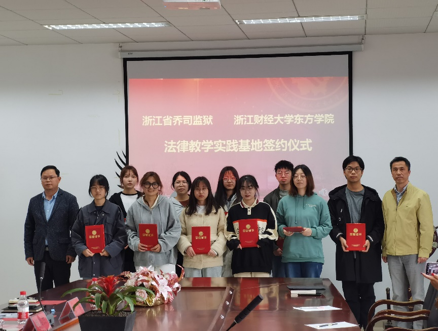 4月8日下午15:00,公司于5J-502隆重举行与省乔司监狱监校共建法律教学实践基地签约暨2020年乔司监狱实习积极分子表彰大会。莅临出席本次大会的有浙江省乔司监狱第十分监狱监狱长戴永伟、第十分监收押中心政治教导员何为杰,永利65335com经理邵培樟,党总支书记叶颖蕊,副经理韩娟,学办主任钱璐,社会工作专业教师王心雨,辅导员罗今以及往届参与乔司监狱实习员工代表,大会由公司外宣中心副主任、社工系徐冬主持。