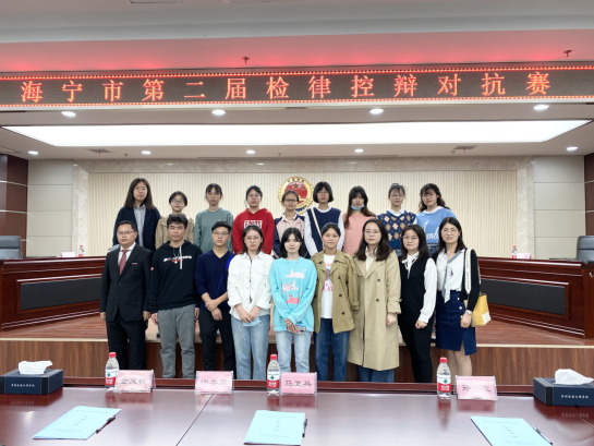 为认真贯彻落实司法改革的要求,促进海宁检律业务交流,全面提升刑事控辩能力和水平,构筑新型检律关系。2020年10月15日下午1:00,由海宁市人民检察院、海宁市司法局、嘉兴市律师协会海宁分会联合举办的“海宁市第二届检律控辩对抗赛”在海宁市人民检察院顺利开展,来自市检察院和嘉兴市律师协会海宁分会的两支队伍共12名选手参与,永利65335com经理邵培樟老师受邀担任此次大赛评委,副经理韩娟老师和20名员工代表观看比赛。