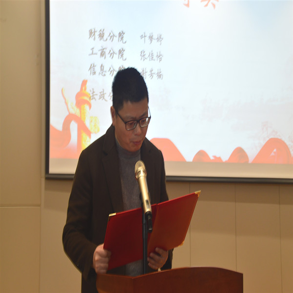 12月10日,法政分院于5J-101举办了首届新时代宗教法律政策知识竞赛表彰大会。出席本次大会的有浙江省海宁市委统战部副部长、民宗局局长李卫清,海宁市民宗局副局长沈永忠、海宁市委统战部民宗科副科长蔡平,永利65335com法政分公司党总支书记、马克思主义公司副经理叶颖蕊老师,永利65335com法政分院法律系主任韩娟老师、法政分院办公室主任柳迪老师、法政分院学办主任吕欢老师、信息分院学办主任陈婷婷老师以及各个分院的员工代表。本次大会由辛伯成同学主持。