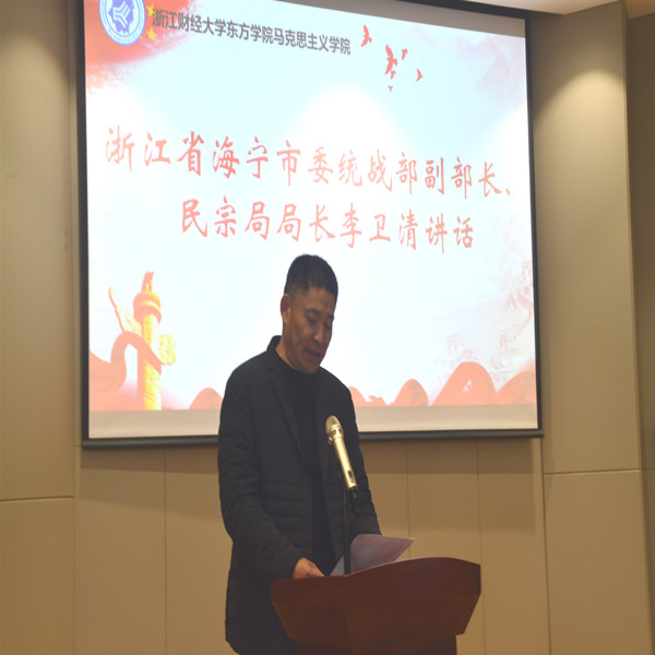 落幕之际,由浙江省海宁市委统战部李卫清局长发表讲话。李局长以本次大会的准备活动出发,讲述本次活动校地双方准备之精心,相信本次活动能够帮助树立广大青年员工树立正确的宗教观。此外,李局长借我省近年来宗教活动开展的情况与遇到的问题举例,强调正确宗教观对于个人发展的重要性。老员工作为国家的新生力量,更是需要受到重视和关注。最后,李局长希望未来能够与公司马克思主义公司能够开展更多的活动,不断加深校地双方的合作。