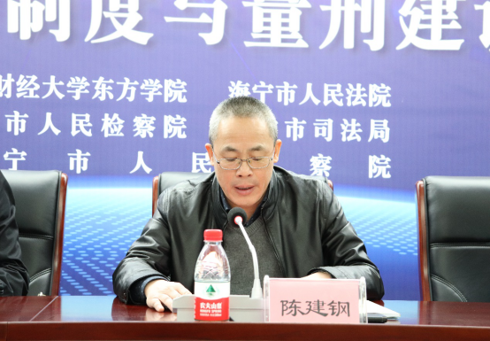 海宁市人民法院经理陈建钢致开幕词,他以犯罪主体、司法机关、社会治理三个角度为出发点,提出认罪认罚制度的完善不仅为政法系统法学理论研究提供更好平台,更有利于节省司法资源、提高司法效率,并给予当事人诉讼权利和诉讼地位的尊重,从而化解社会矛盾,促进社会和谐。司法实践的意义在于促进社会和谐,完善认罪认罚从宽制度意义深远,同时也是落实新时代依法治国要求的重要体现。