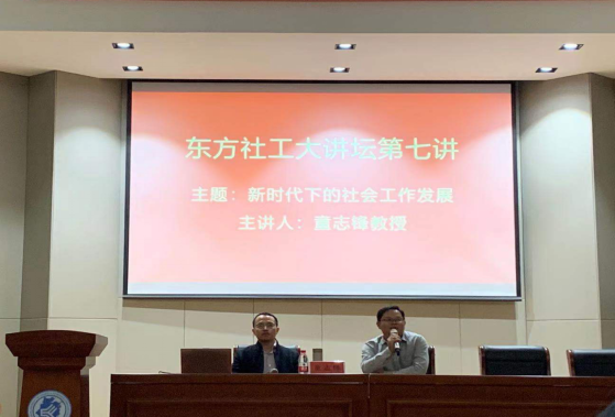 11月5日18:30,浙江财经大学法公司副经理、浙江省社会工作师协会副会长童志锋教授受邀来公司作《新时代下的社会工作发展》专题讲座(东方社工大讲坛第七讲),法政分院邵培樟经理主持讲座,社会工作系副主任舒振宇老师、系专任教师郭美晨老师及19级社会工作全体新生参加此次讲座。
