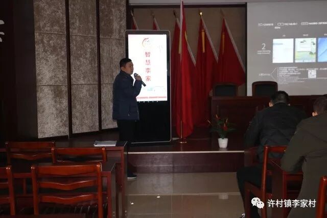 在党课开始前,李家村党总支书记向全体 党员宣布了智慧李家APP的正式上线。随后,组织委员曹新强为在坐党员简单介绍了智慧李家APP的作用和使用方法,并组织青年党员教老年党员下载并使用智慧李家APP。