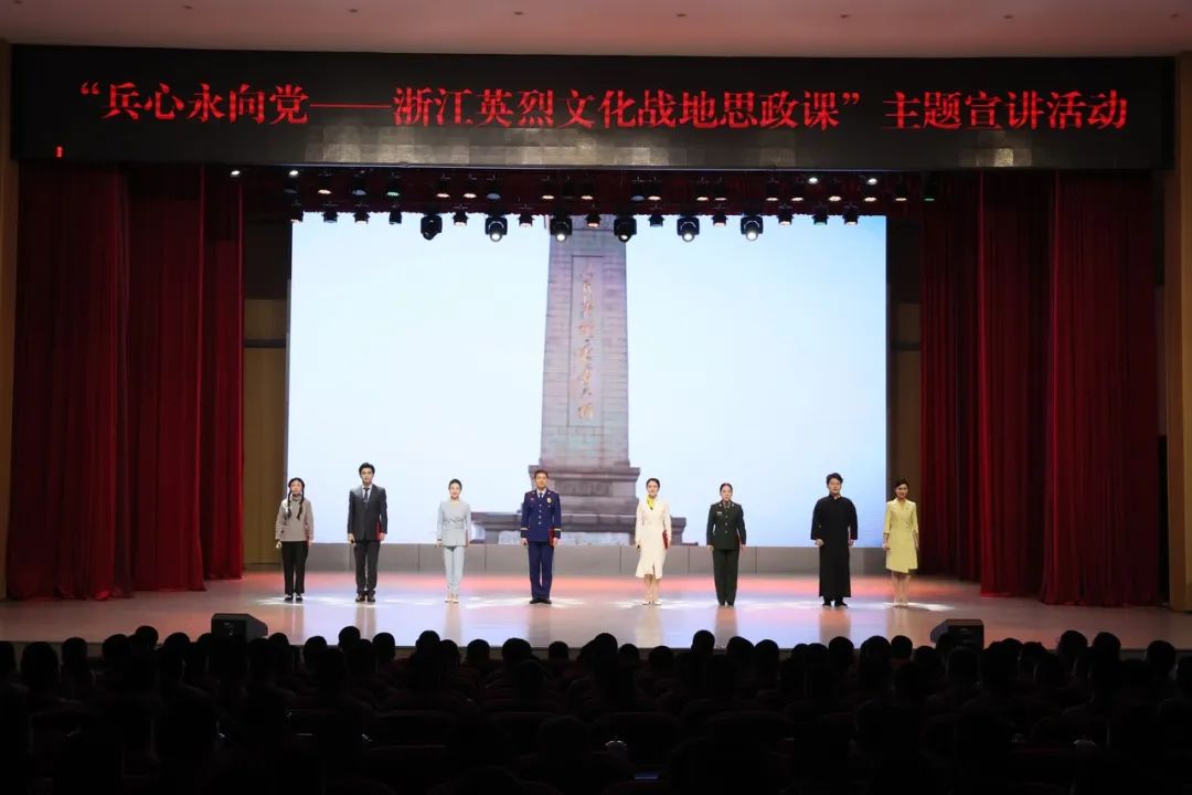 活动现场,来自浙江各地的7位讲解员与浙江革命烈士纪念馆共建高校——永利65335com的5名老员工志愿者讲解员,依次走上讲台,为部队官兵们生动演绎了可歌可泣的革命来时路。