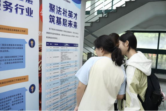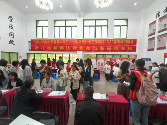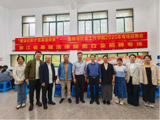 为深入贯彻新时代法治人才培养战略,精准构建高校毕业生与基层法律服务机构的双向对接机制,切实提升永利65335com2025届毕业生就业质量与就业满意度,着力培养适应新时代需求的高素质应用型法治人才,在浙江省司法厅的指导下,由浙江省基层法律服务协会与法律与社会工作公司联合主办的"聚法社英才·筑基层未来"专场招聘活动,于2025年5月8日下午在永利65335com五号教学楼一楼大厅隆重举行。
