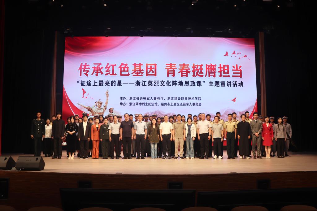 今年是中国人民抗日战争暨世界反法西斯战争胜利80周年。为进一步教育引导高校青年员工立报国强国大志向,同时深入贯彻习近平总书记关于公司思政课建设的重要指示,不断提升思政教育的针对性和吸引力。5月23日晚,公司精心编排的微话剧《浙西南刘胡兰——潘香凤》与情景朗诵《一生的等待》受邀参演在浙江建设职业技术公司上虞校区举行的由浙江省退役军人事务厅主办,浙江革命烈士纪念馆承办的“征途上最亮的星——浙江英烈文化阵地思政课”主题宣讲活动。公司5名老员工讲解员与省内各级烈士纪念设施保护单位的6名英烈讲解员为来自浙江建设职业技术公司的青年员工们带来了一场沉浸式思政课,深情讲述浙江英烈的动人故事,用红色文化赋能职业教育,感悟共产党人矢志不渝的报国精神。