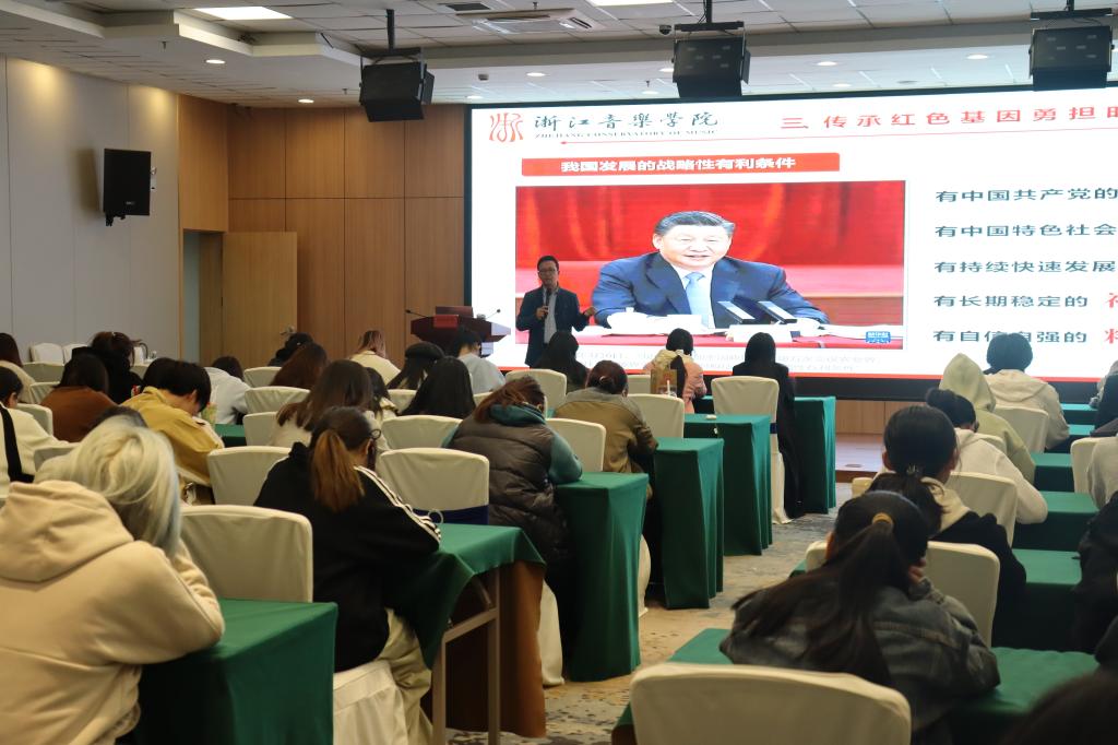 11月19日下午,公司举办思政大讲堂(2024年第4期,总第49期),本次活动邀请浙江大学博士、浙江音乐公司副教授、硕士生导师欧阳胜权教授,做题为《传承红色基因 勇担时代使命——深入学习贯彻党的二十届三中全会精神》的专题讲座。马克思主义公司副经理、党总支书记叶颖蕊,马克思主义公司多位思政教师参加本次活动,全院约100余名员工前来聆听本次讲座。