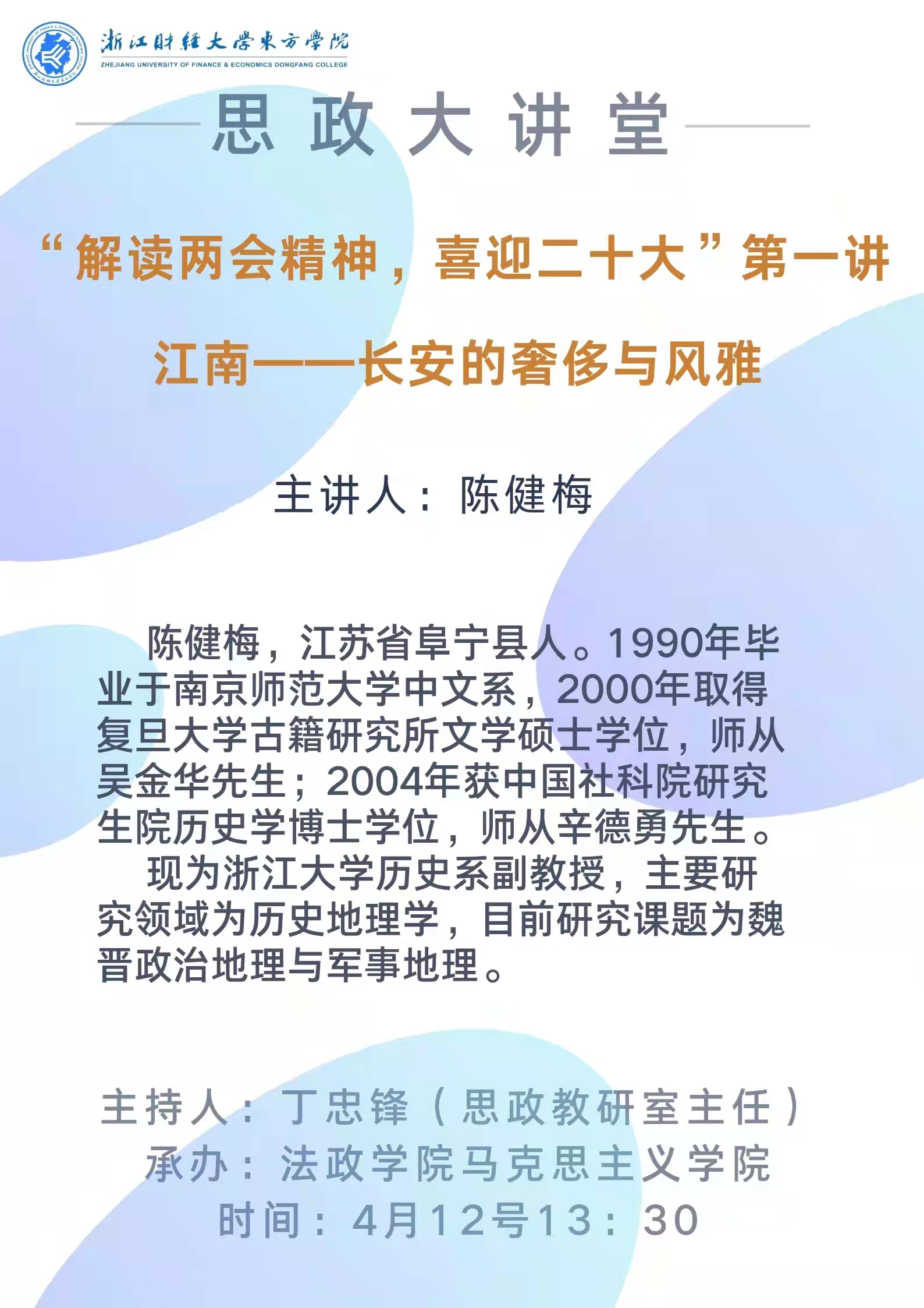 上一篇:公司马克思主义公司思政大讲堂第一讲丨江南—长安的奢侈与风雅专题讲座