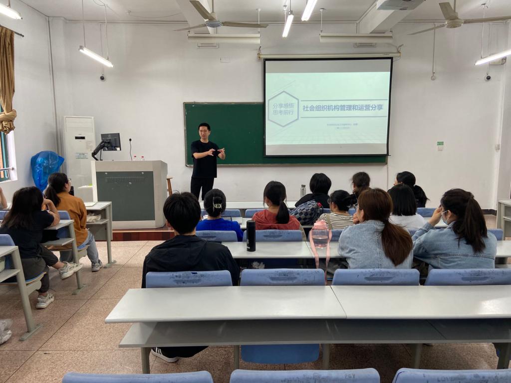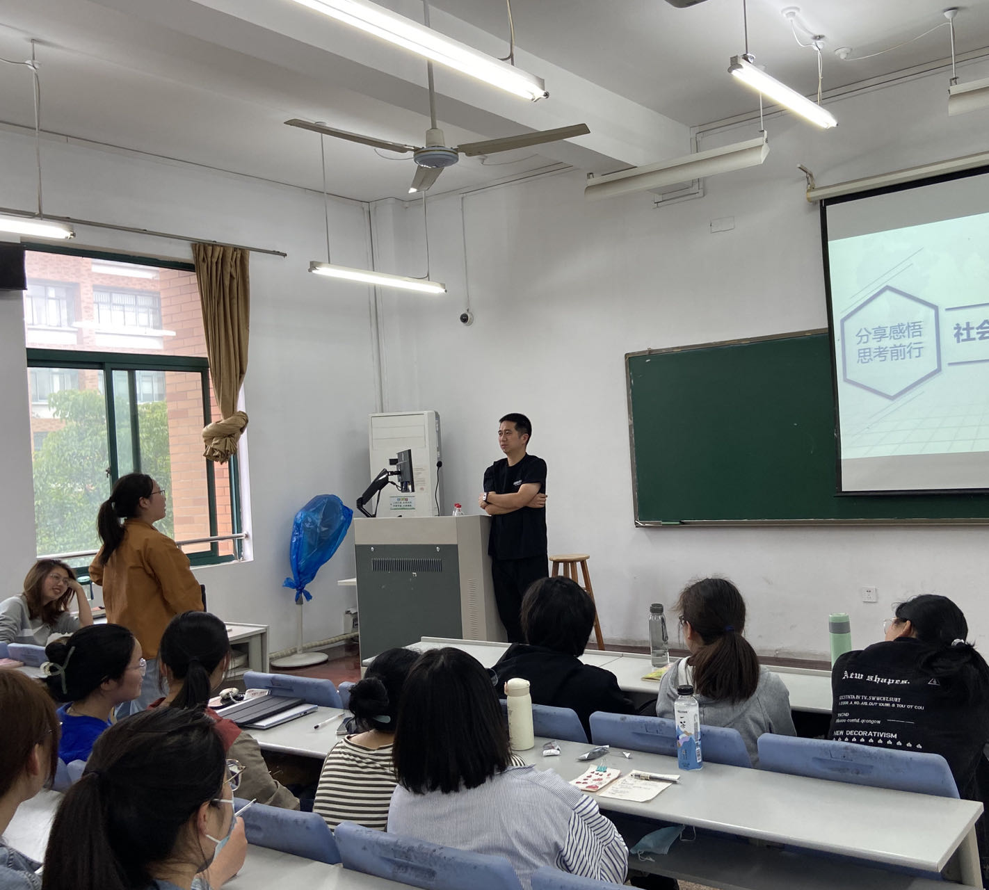 陈老师结合自身创业经历和社会组织管理经验,与同学们进行了深入的交流与探讨。陈老师通过生动的实例让同学们感知到,资源对于社会工作机构生存与发展的极端重要性,并结合自身经历,向同学们分享了如何在具体的情境和场域中灵活有效争取资源的策略与技巧。这其中,善抓政策机遇、及时关注社会政策寻求制度支持是社工机构争取资源的基本动作。除此之外,陈老师还热心解答了同学们就业创业、未来发展规划等方面的困惑。