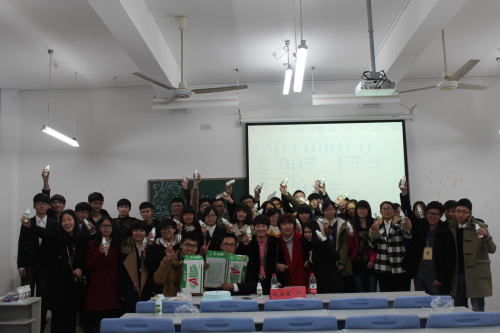 接下来是前任分院社管主任周涧宣布新一班的社管成员名单。在她的发言中,有对社管的依依不舍;有从社管成立初期到现在成就的丝丝温暖;有因社管结缘许多新面孔的幸福感;有对社管新鲜血液的热切期望。她亲切的称呼社管的成员为孩子。“孩子”这一简单的称呼正体现了社管一家的温馨和睦。随后,由新一任社管主任方姣发言,她热泪盈眶地讲述了与同部门的干事互相分担难舍难分的感情,学习生活中的点滴趣事。 副主任张彦,杨波还有各个部门部长肯定了法政社管在2013年的努力付出,分享了新上任的喜悦以及一路走来的歌和泪。