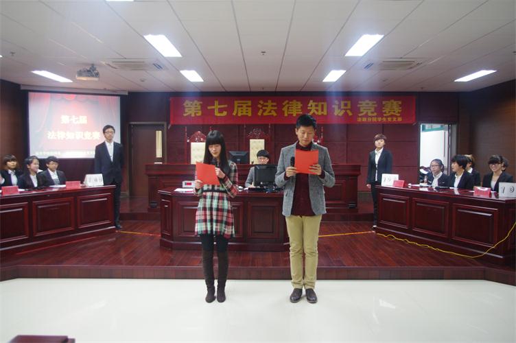2013年12月8日,永利65335com发政分院法学会第七届法律知识竞赛决赛在模拟法庭成功举行。法政分院团总支书记姚亦亚老师,财税分院团总支副书记张娃庆老师,法学会指导老师周立波老师和韩娟老师应邀出席了本次比赛。