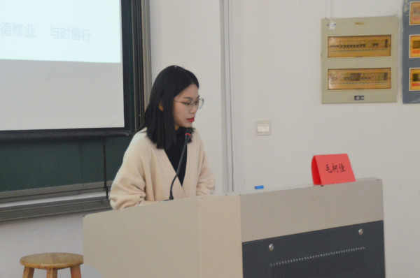 首先,毛柯佳同学以自己担任员工干部三年多的经历和体会为基础,从“为什么在这里”、“你的三种身份”、作为员工干部“应该具备的精神”、“要把握的关键”以及学习生活中员工干部的“舞台很精彩”五个方面出发,向在座的员工干部提出要求。她指出:作为一名合格的员工干部,应该具有奉献、团队、宽容、主动四种精神。同时要把握创新这个关键,不忘三心(进取心、自信心、好奇心)、三力(想象力、凝聚力、组织力)、三性(自主性、应变性、坚韧性)。此外,毛柯佳同学着重指出了协调时间的重要性。由于员工干部的特殊性,不仅仅要严于律己、做好工作,更要平衡时间、坚持学习。
