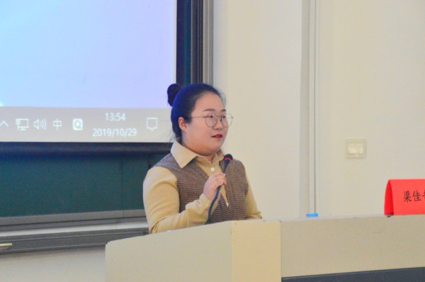 紧接着,梁佳音同学也跟大家分享了自己的故事。她指出:沟通、创新、学习是员工干部最基本的素养。梁佳音同学着重强调了尊重一词。对询问自己问题同学保持耐心,对部门伙伴的工作成果认真对待,与学长学姐、老师相处时不忘礼貌。只有将尊重贯穿于日常工作生活中,才能成为一名合格的员工干部。