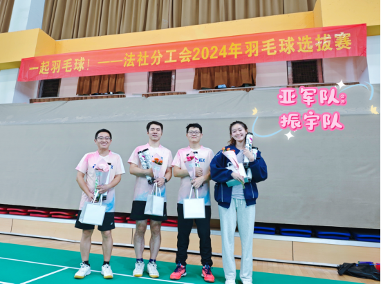 法社羽毛球队是一个有爱的团队,他们热爱运动,通力配合,全情付出。他们的热情也洋溢到工作中,是各个领域的主力干将,推动着永利65335com建设发展。他们有无条件的爱,有对胜利的渴望,他们都是勇敢的人,这就是运动的快乐,是团队的力量。